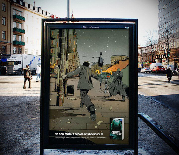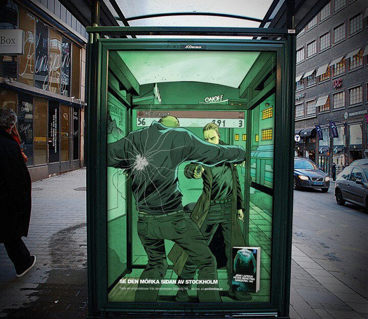 OOH campaign for graphic novel Gängkring 145. This one is an oldie but goldie, becoming an Epica nominee as well as a Resumé "Månadens Kampanj" gold winner. Perhaps a bit harder to see on a screen than IRL, the big idea is that the illustrations meld with the world around them, giving you a glimpse into the dark side of Stockholm. Click to enlarge.Idea • copywriting