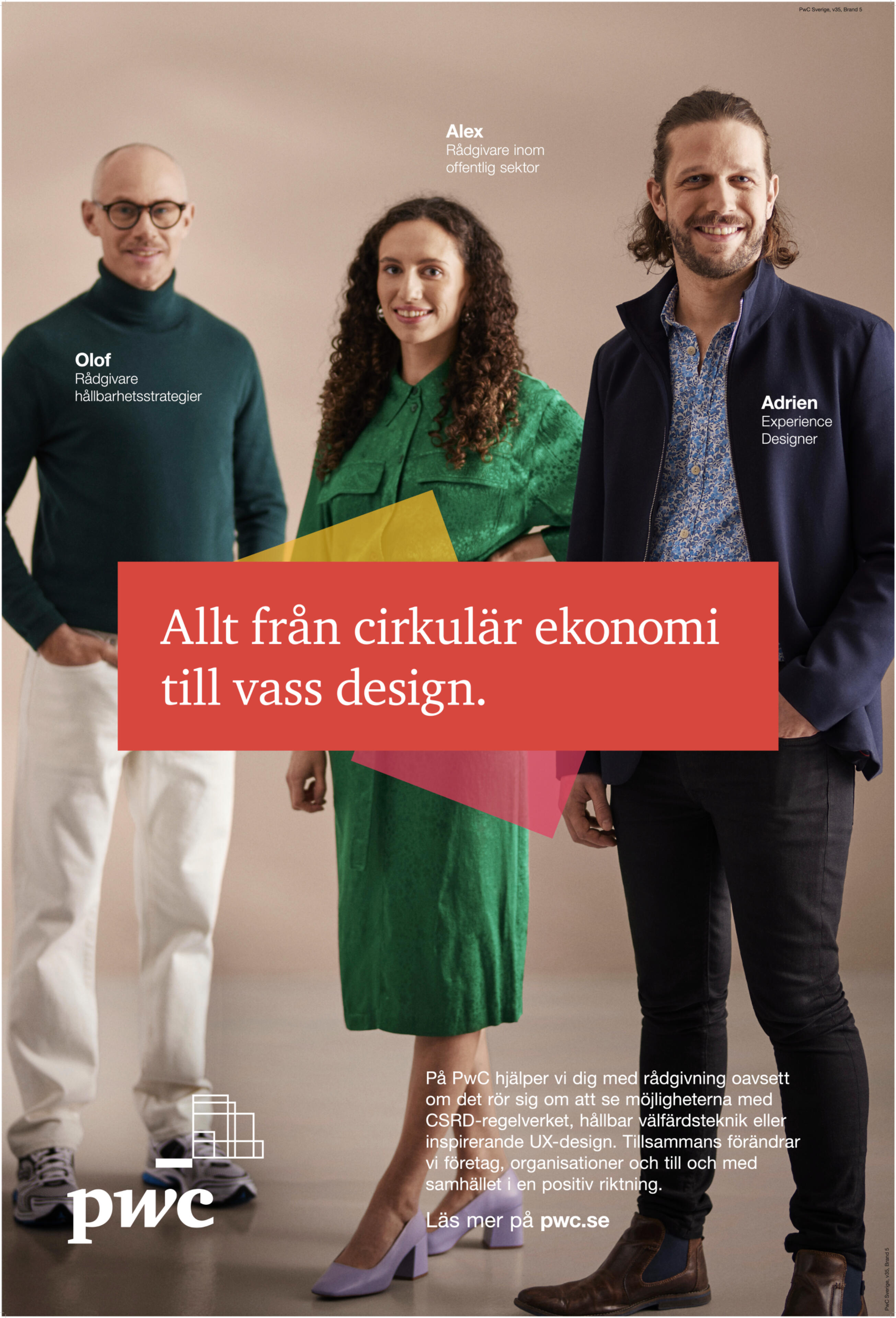 During my work with PwC, two key challenges became clear. First, we needed to widen the perception of PwC beyond accounting and highlight the breadth of PwC's offer – to both customers and prospective employees. The gallery shows print ads from one of the campaigns, a combined B2B and employer branding effort.Second, interviews with employees revealed that many were expecting a highly competitive and formal culture when they joined PwC. To attract new talent, we wanted to showcase the reality instead: a more human, open and unfiltered side of the organization. This led to the creation of the talk show "På tal om PwC", where employees spoke candidly about their work and everyday life. Watch the first episode below.Results: