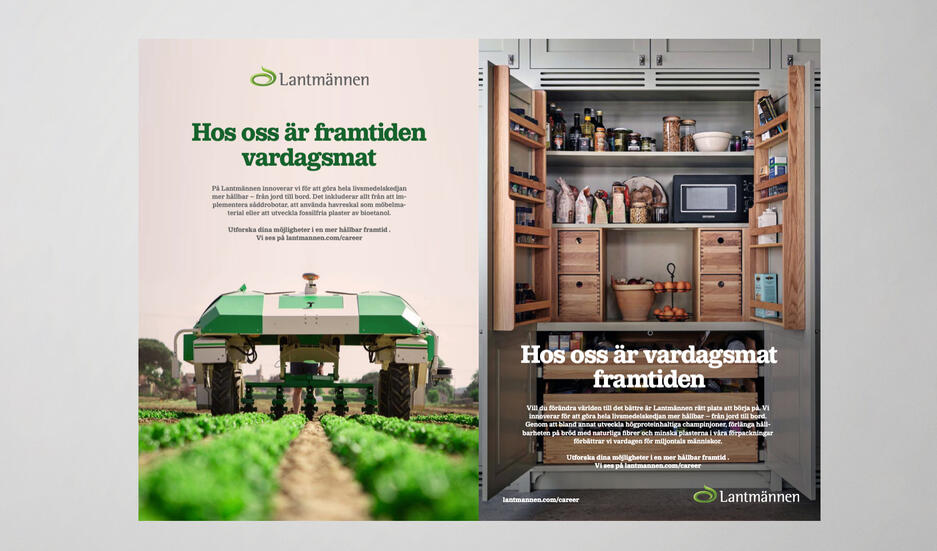 This was just a one-off, but I think it really had something, showing two perspectives of what Lantmännen does and how they are modernizing our food supply – as well as what possibilities they offer prospective employees.Idea • copywriting